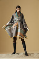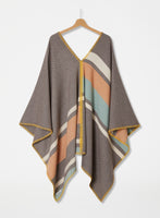 Travel Poncho & Blanket | Brown & Light Orange-Light Blue