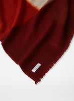 This square shawl is amazingly soft as it has been finished using pure river water. The fabric design is inspired from an ancient Himalayan weave, a combination of different signs that gives it a pleasantly uneven look and feel. Two of the borders are contrast-colour while the background colour is natural. Warm and enveloping, it can also be used as a small travel blanket.